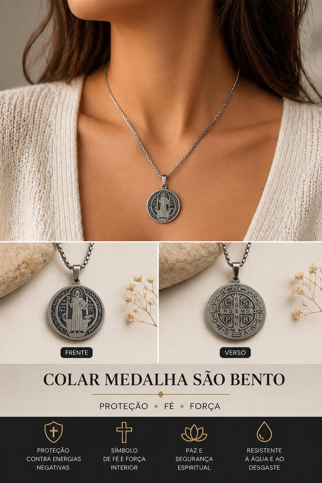 A Medalha de São Bento é conhecida pela sua forte proteção contra energias negativas, sendo um símbolo de fé, força e segurança espiritual.
