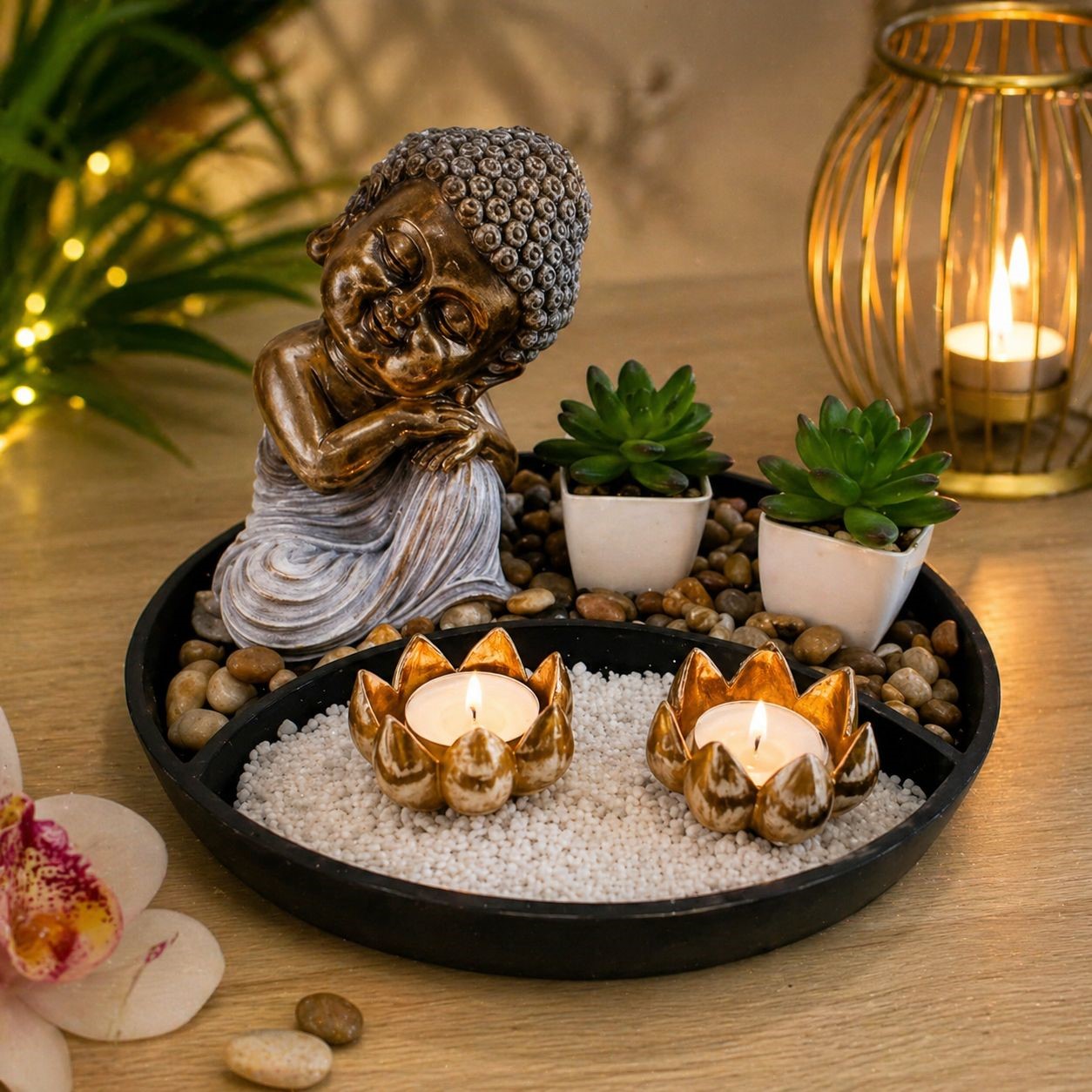 Cria um ambiente de tranquilidade e energia positiva com este elegante Jardim Zen com Buda 🌿✨