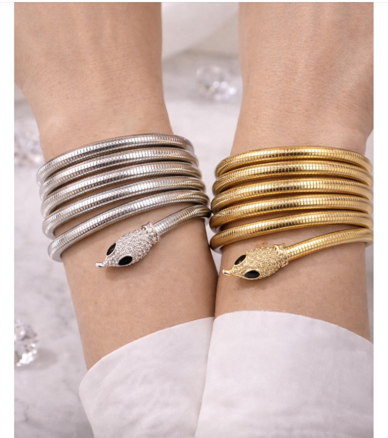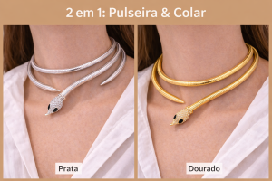 Com um design sofisticado em forma de cobra, adapta-se facilmente ao teu estilo — usa como pulseira ou transforma num colar deslumbrante em segundos.
