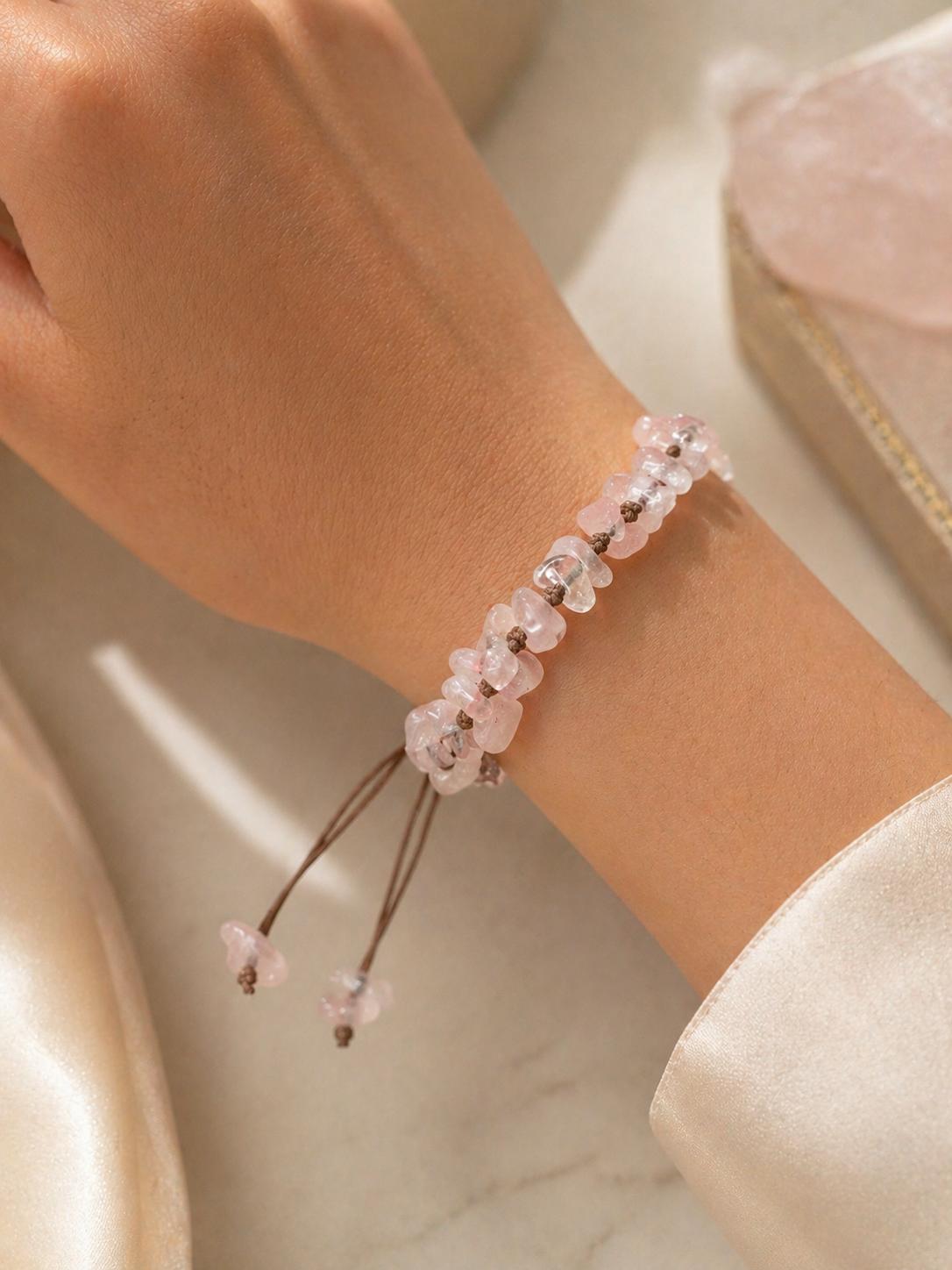 Descobre a delicadeza e a energia do amor com esta pulseira em Quartzo Rosa Natural, uma pedra conhecida por promover o equilíbrio emocional, a harmonia e o amor-próprio.